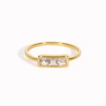 Es una joya elegante y sofisticada que presenta tres piedras preciosas o semipreciosas en su diseño. Este tipo de anillo es conocido por su simbolismo, ya que las tres piedras suelen representar momentos importantes de la vida, como el pasado, el presente y el futuro, o pueden tener un significado personal para quien lo lleva.
