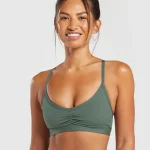 Es una prenda de ropa deportiva diseñada para ofrecer soporte durante actividades físicas. Este tipo de sujetador está confeccionado con materiales elásticos y transpirables que proporcionan comodidad y estabilidad. Los tirantes son delgados y ajustables, permitiendo personalizar el ajuste según las necesidades de quien lo use. El fruncido en la parte frontal o lateral del sujetador añade un detalle estético que también puede ayudar a dar una forma más favorecedora al busto. Es ideal para entrenamientos de bajo a medio impacto, combinando funcionalidad con un toque de estilo.